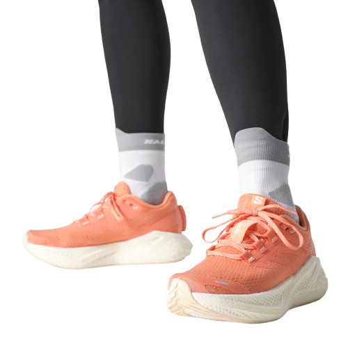 Entdecken Sie die Laufschuhe Salomon Aero Glide 3 W Lachs, die speziell für Frauen entwickelt wurden, die Komfort und Leistung auf allen Arten von Terrain suchen.