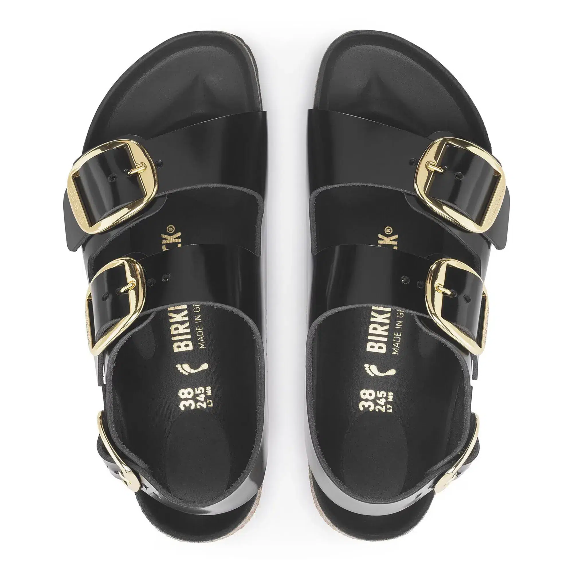 Die Sandalen Birkenstock Milano Big Buckle LENA High Shine Black fallen normal aus – wähle deine gewohnte Grösse für die perfekte Passform.